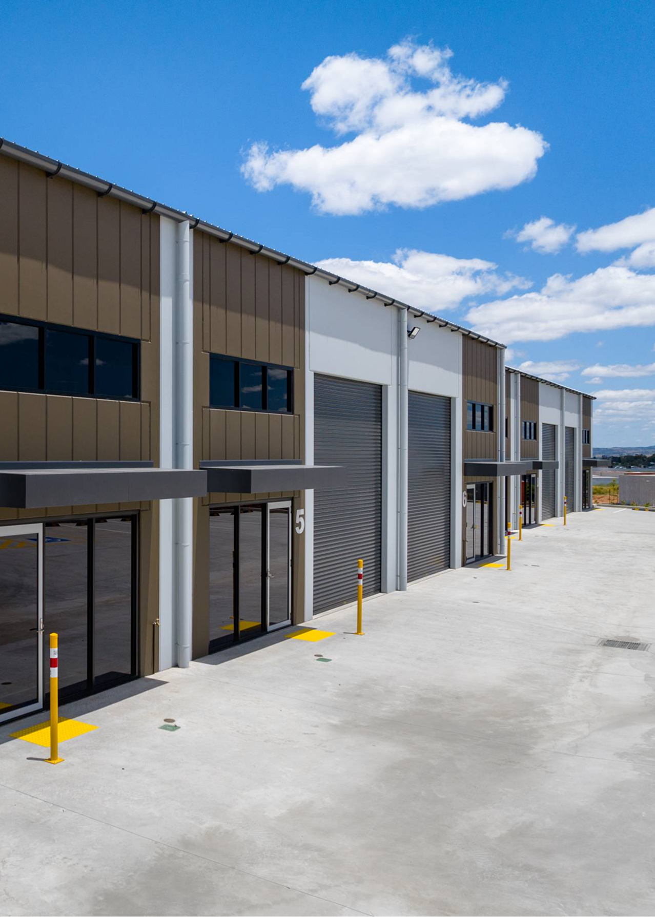 Purpose-built to respond to strong demand for strata industrial space in Kelso, the 20-unit complex was designed to maximise functionality across the 7,726 sqm site while maintaining efficient circulation and clear access for heavy vehicles. Each unit includes designated parking, modern architectural detailing and secure full-height precast concrete construction, creating a cohesive industrial environment that balances durability with professional presentation and long-term asset value.