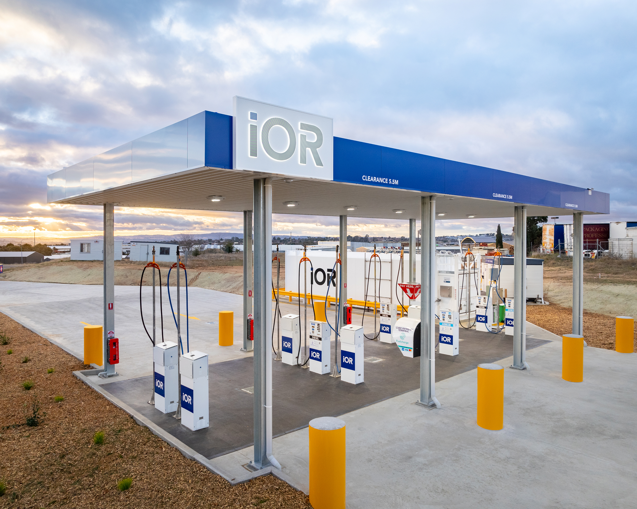 The 2,000 sqm site features 12 tonnes of structural steel supporting a 5.5 m high canopy, providing structural integrity and clearance for large vehicles. Clear entry and exit points on a corner block enhance accessibility, while modern fixtures and integrated landscaping create a visually appealing facility. By creating a high-quality, durable structure, the project helps iOR establish a strong presence in the Bathurst region while meeting both operational and customer needs.