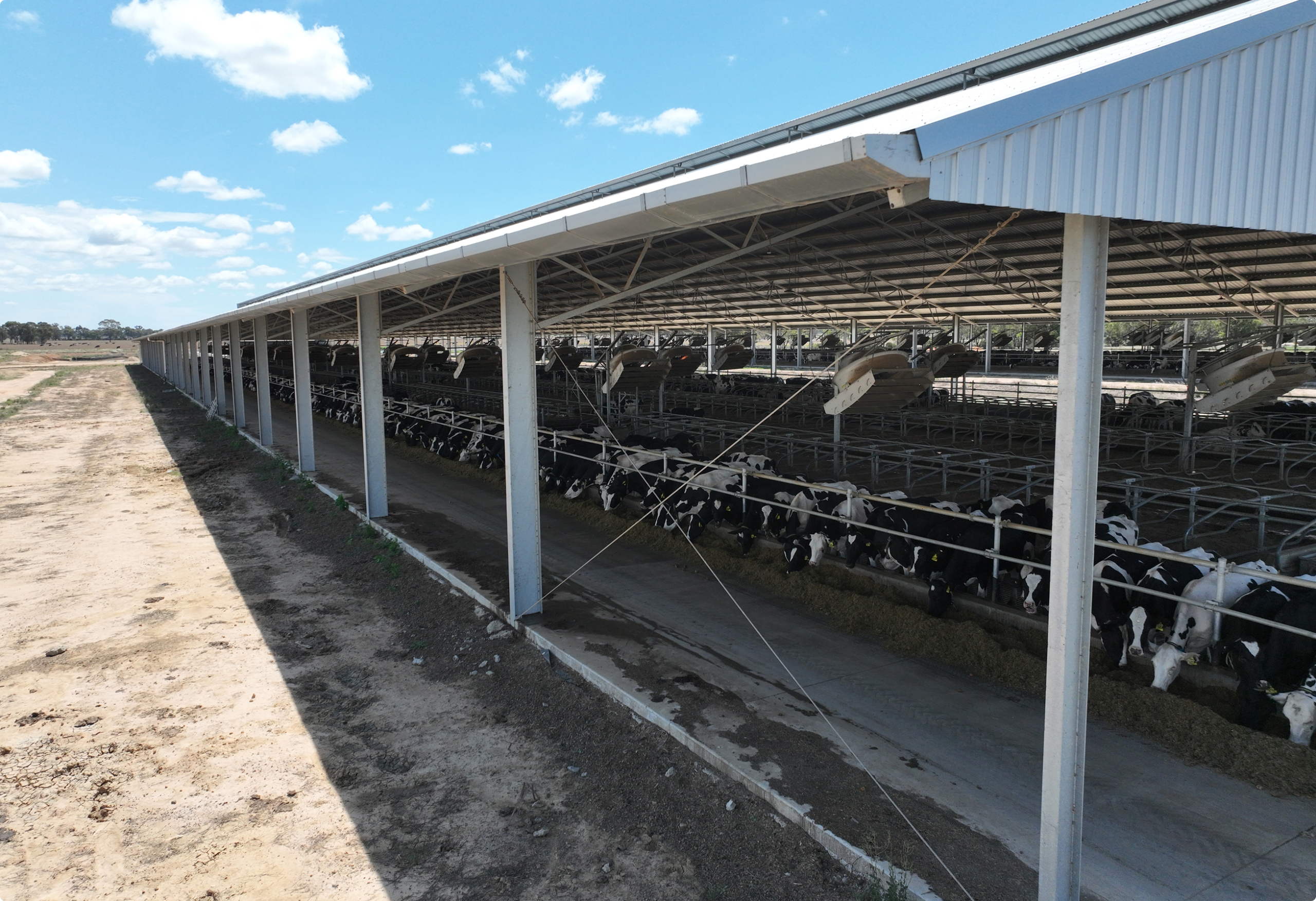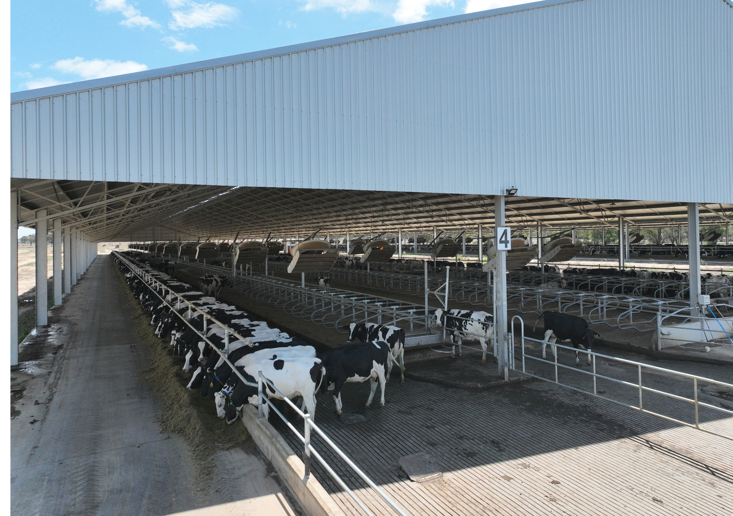 Deep, clean sand bedding and automated fans with temperature and humidity sensors ensured cow comfort in any conditions. We also designed and built a commodity barn and water recycling systems to manage manure and water, making the facility self-sufficient year-round.
